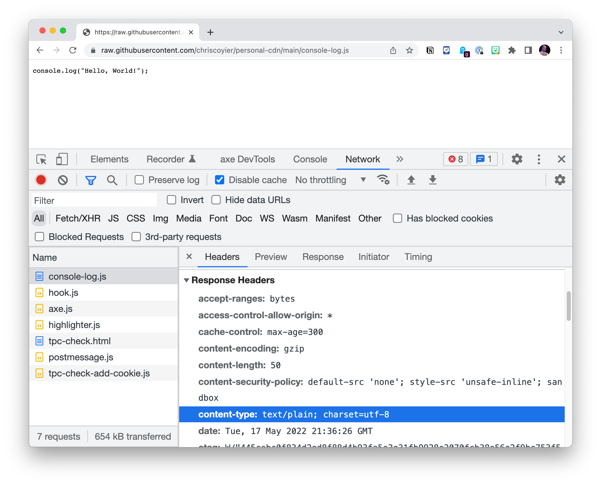 I don’t think GitHub likes it when you use them as a CDN. They provide a “raw” URL to files, but they serve the wrong content-type headers, so we can’t just use that.